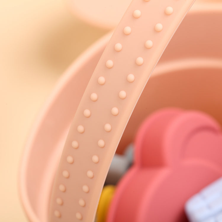 Enhance your kids' beach experience with our Silicone Beach Bucket Set! Complete with a bucket, spade, and six silicone molds, all stored in a convenient drawstring mesh bag, it promises endless fun in the sun. After beach time, continue the excitement in the kitchen with your little one, using the animal molds to create delicious cookies and jelly cups. And with dishwasher-safe, food-grade silicone, cleanup is a breeze!